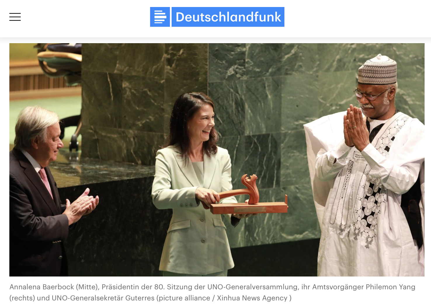 Weiterlesen: https://www.deutschlandfunk.de/baerbock-leitet-die-80-uno-generalversammlung-102.html