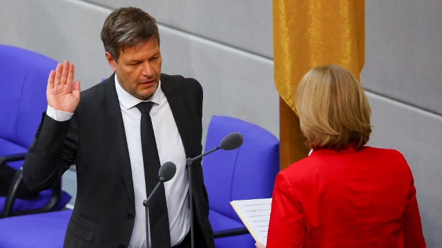 Das neue Kabinett von Bundeskanzler Olaf Scholz wurde am Mittwoch im Deutschen Bundestag vereidigt – darunter auch Robert Habeck. Die Rituale – für den Vizekanzler noch sichtlich ungewohnt. Kameras hielten den Moment fest. Die Ampelkoalition ist im Amt, der neue Kanzler Olaf Scholz gewählt und verei