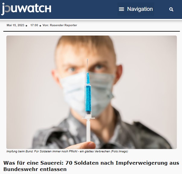 Wieterlesen: https://journalistenwatch.com/2023/05/15/was-fuer-eine-sauerei-70-soldaten-nach-impfverweigerung-aus-bundeswehr-entlassen/